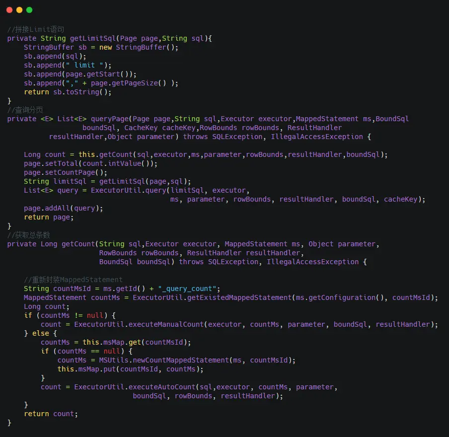 如上所言,插件中集成了分页功能,实现流程与PageHelper一样,但考虑到冲突,并未直接使用。