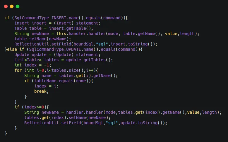 比如,对于insert语句和update语句,它的核心代码如下: