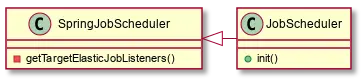 SpringJobScheduler继承自JobScheduler,容器启动的时候用调用schedule的init方法,jobSchedule和springJobScheduler之间关系如下: