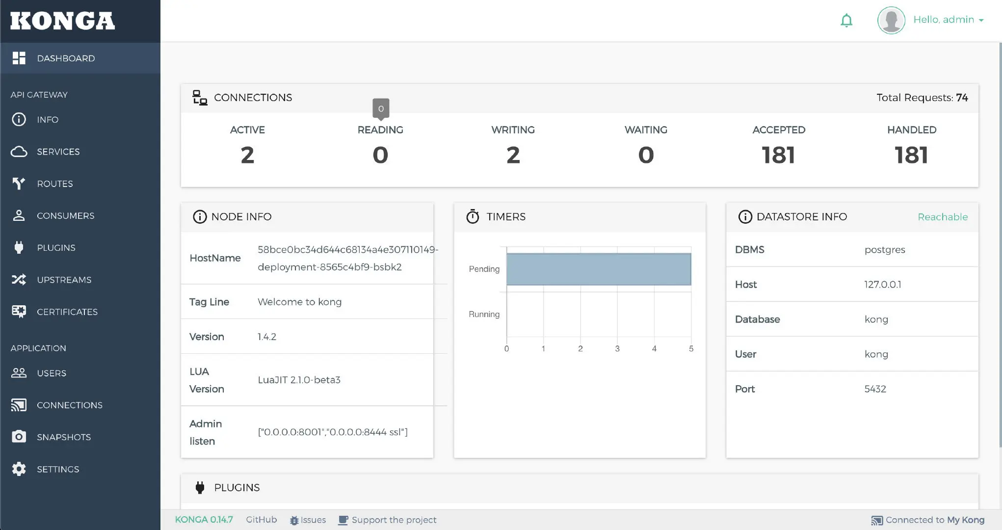 - 连接成功,就可以使用Konga来管理你的Kong了