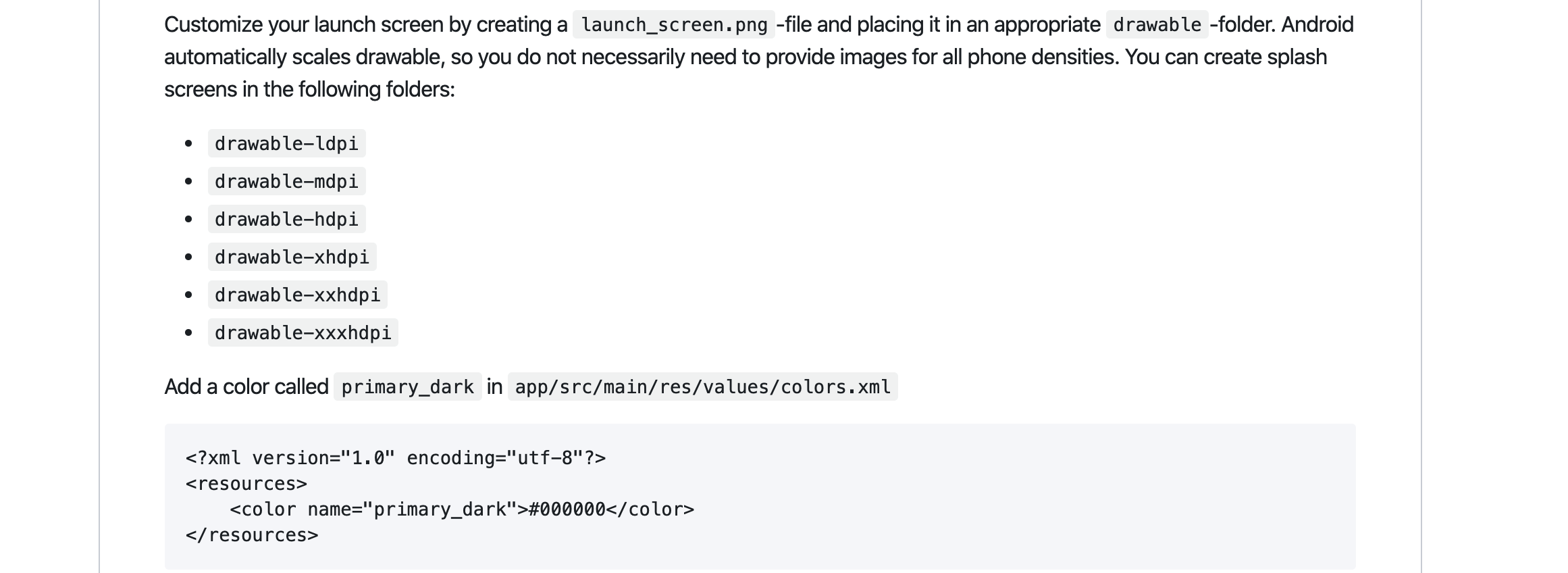 2.Create a file called launch_screen.xml in app/src/main/res/layout (create the layout-folder if it doesn't exist). The contents of the file should be the following(create drable folder if it doesn't exit):