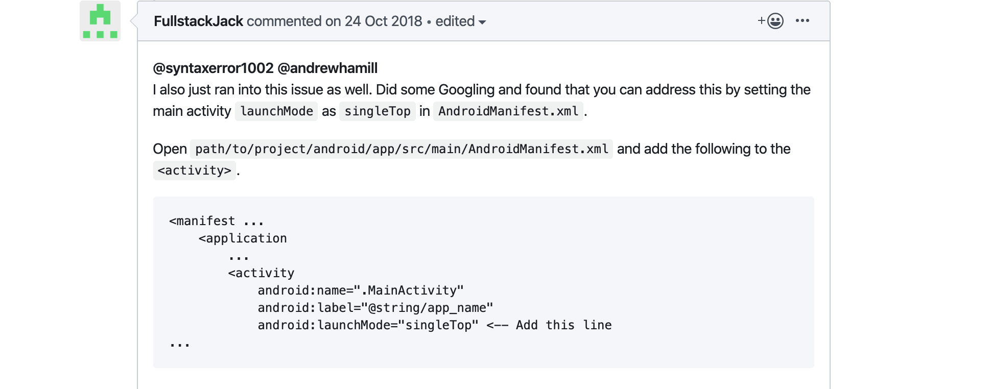 android:launchMode="singleTop" <-- Add this line