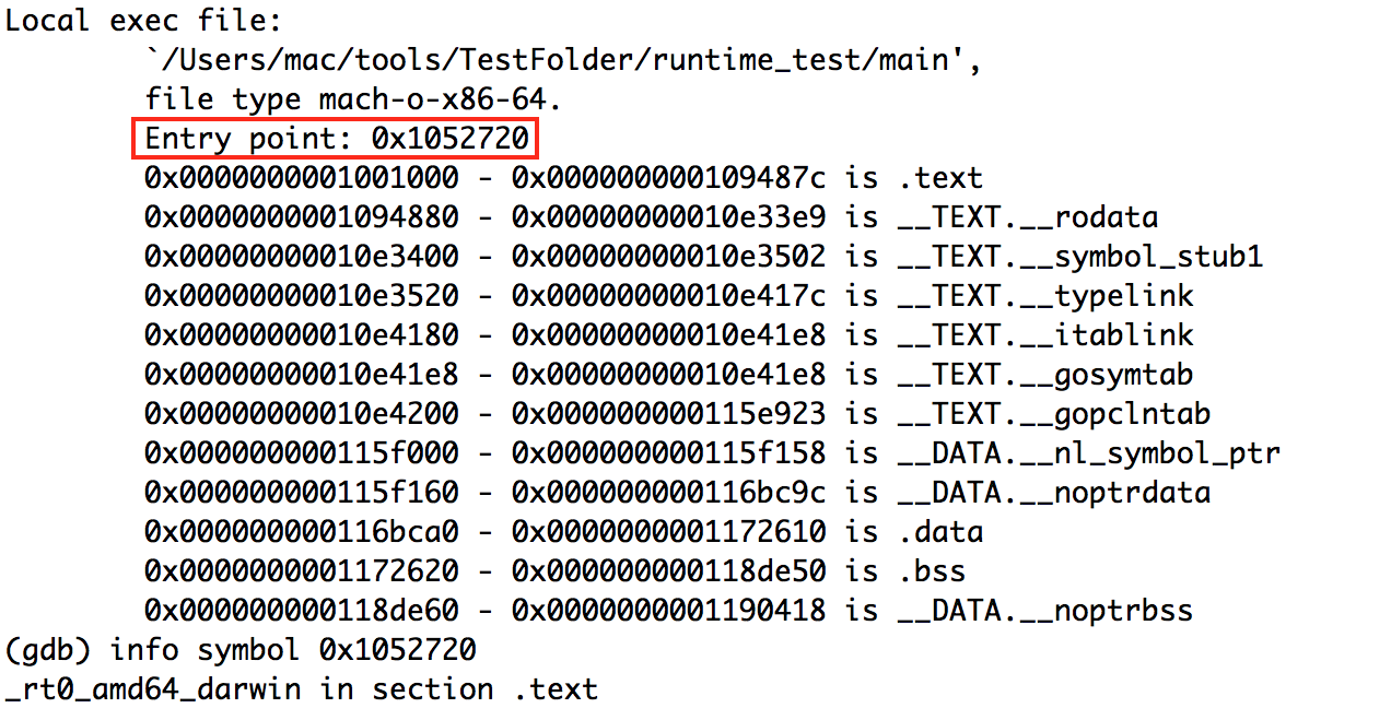 开始了, 我们先编译这个简单的小程序: go build -o main main.go, 接着拿着编译出来的main, 开始debug. 我们的目的是需要知道这个二进制文件第一件执行的事是什么, 我们使用gdb工具打它, 文件, 接着查看它的详细信息: