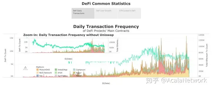 据 Alethio 分析显示2019年以太坊 DeFi 市场单日最高交易量也未到达15000,而这些交易共由超过2万独立以太坊地址用户发起,其中MakerDAO、Compound、Uniswap、Augur四个项目之间存在许多重复用户,不难看出 DeFi 整体的群体规模也相对较小,这与现有产品设计、用户体验差等原因密不可分。因此,DeFi 未来面临的挑战依然在不断让更多公众能够认知 DeFi ,优化用户体验实现更加“傻瓜式”操作,吸引更多的传统金融从业者合作共同探索创新成为了未来发展关键,从而从根本上成为源源不断的发展动力。