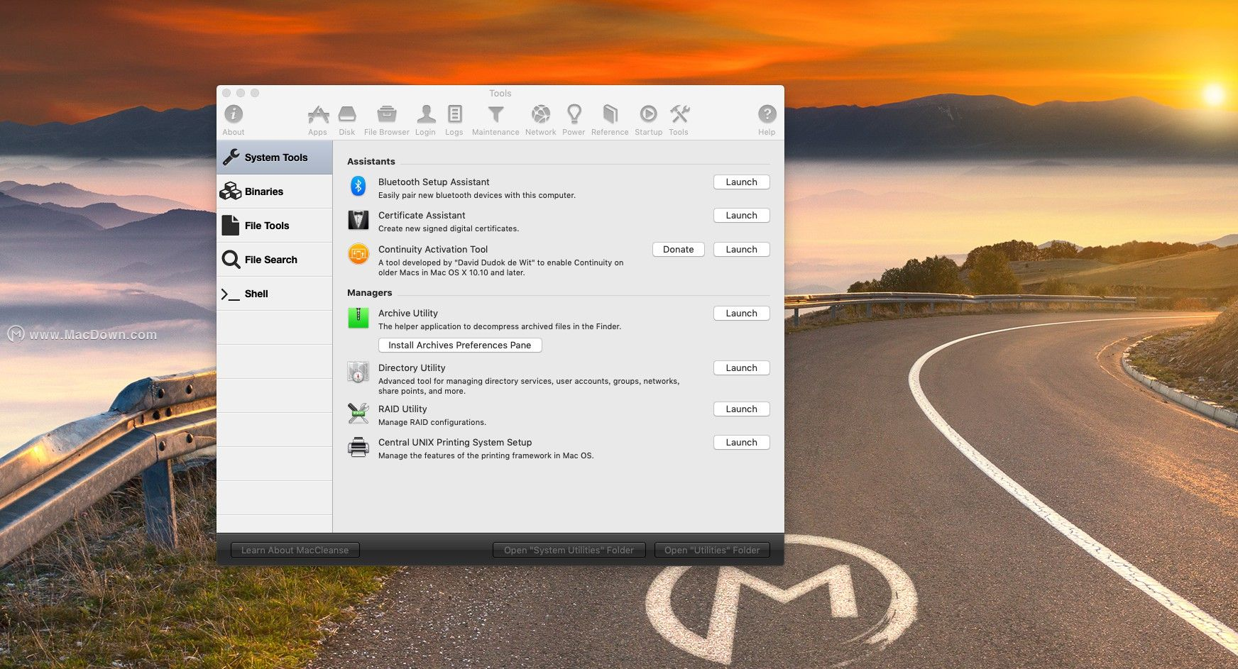 轻松访问通常深埋在系统中的蓝牙,证书,目录,RAID,打印系统助理。