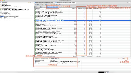 1.生成比较结果(进入页面之前生成hprof和退出页面之后生成hprof文件,然后用MAT的比较功能进行比较)