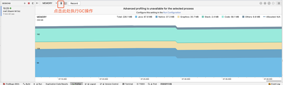 1.打开Memory Profiler工具,在进入结算页面前执行GC操作,除去尽可能无关的内存数据。