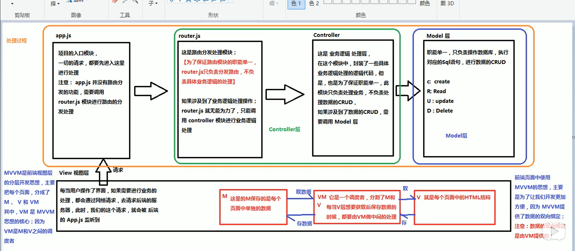 MVC与MVVM sizuka 2020-01-02 403 阅读1分钟 mvc 是后端分层开发的概念 MVVM是前端视图层的概念,主要关注于:视图层分离,即 MVVM 把前端的视图层分为了三部分 Modal、 View 、 ViewModal 前端开发中使用MVVM的好处: MVVM提供了数据的双向绑定