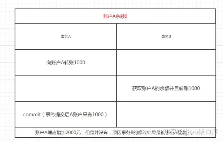 什么是不可重复读:一个事务读取到另一个事务已经提交的数据,称为不可重复读。仔细的同学会发现,这张图和上面的的图的唯一差别是事务B在执行update后commit。