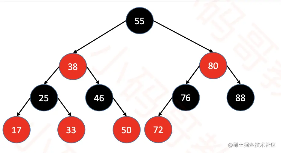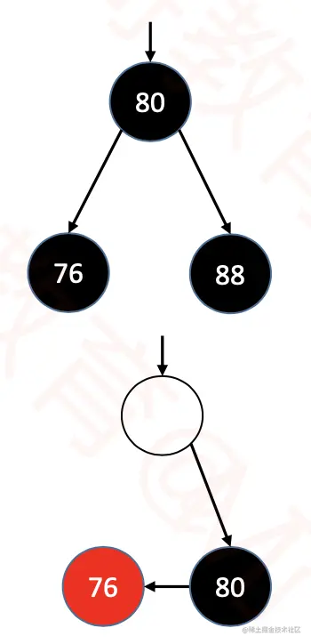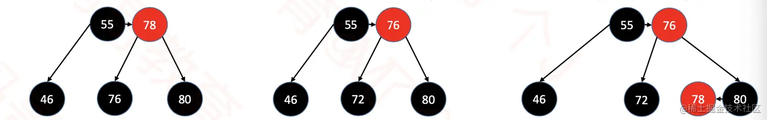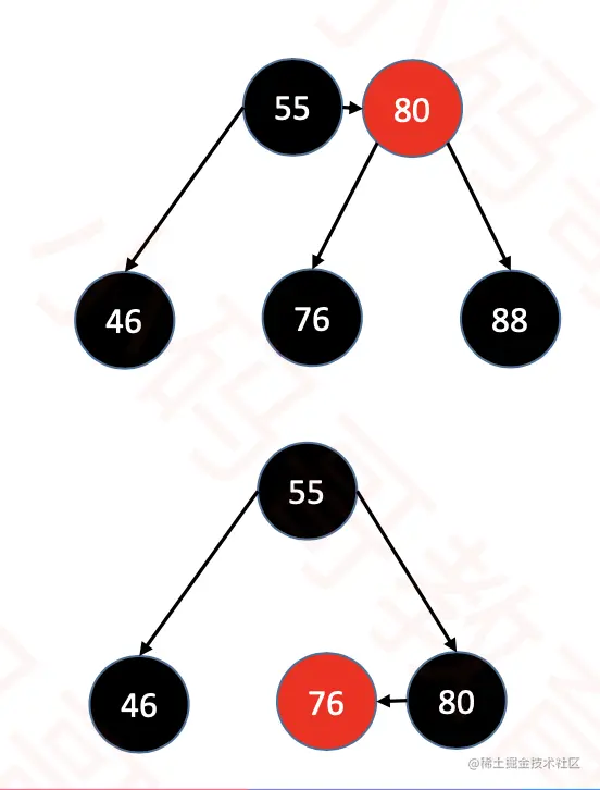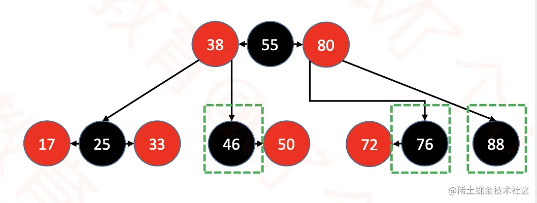 1个RED子节点的BLACK节点,例如46,76。 BLACK叶子节点,例如88。