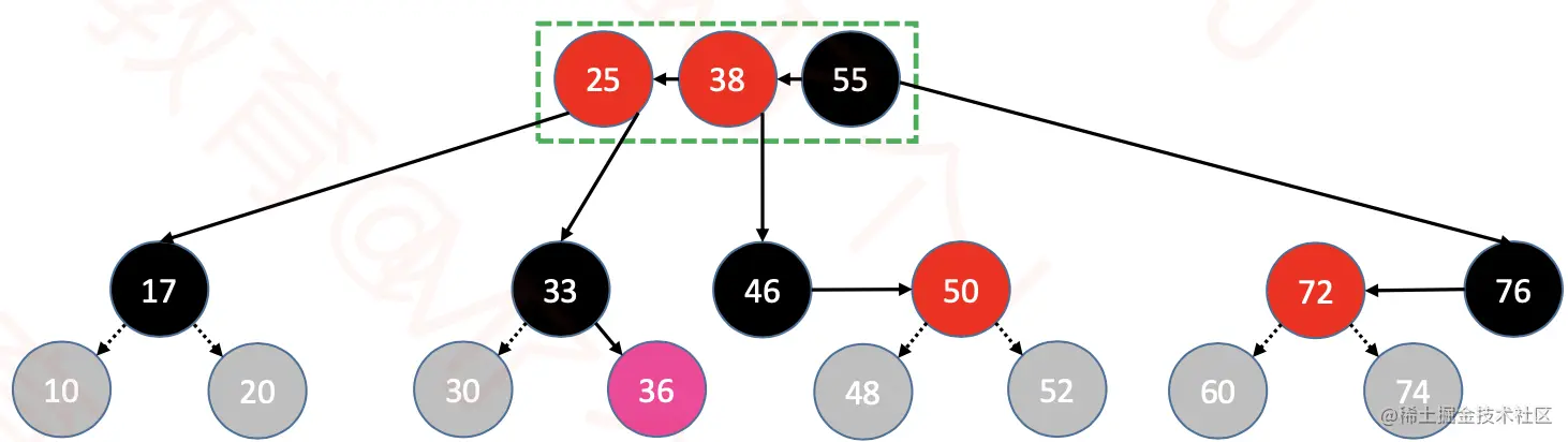 BLACK节点不存在,那么整颗B树只有一个节点,而且是超级节点。