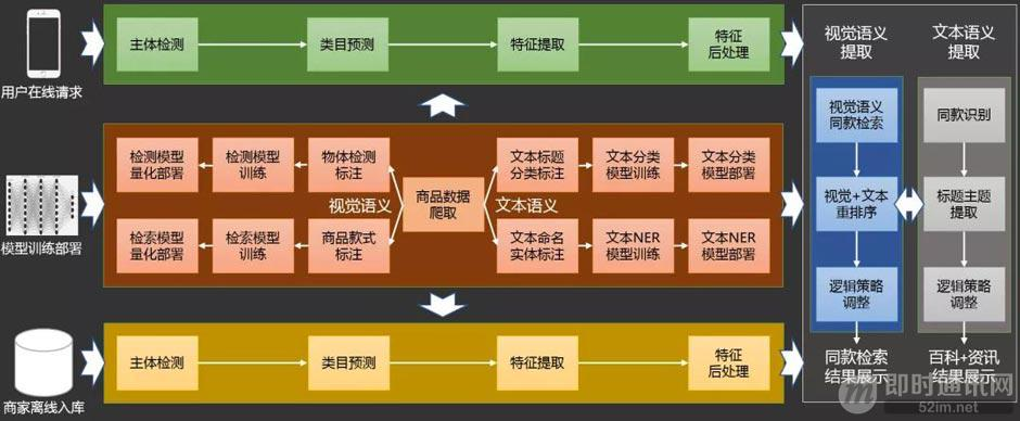 扫一扫识物数据构建分为两大块,一大块是用于模型训练的训练数据建设,另一大块则是支撑用户任意商品检索请求的线上检索库构建。
