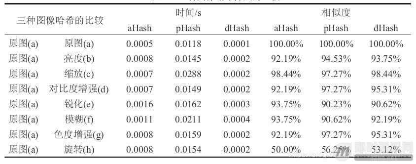 如改变原图的亮度、尺度、对比度、边沿锐化、模糊、色度以及旋转角度,这些图片保留意义也不大,因为在模型训练中采用数据增强策略可以覆盖到。常用的哈希去重主要有 aHash,dHash,pHash 等,详细理解可以参阅相关文章[1,2],我们重点对比各个去重算法的速度和鲁棒性,如下图 6 所示。