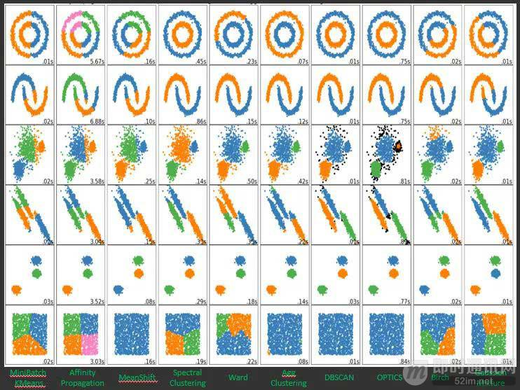 ▲ 图12. 常用聚类算法聚类效果展示及速度对比