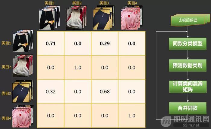 因此,在训练检索模型之前,我们需要完成同款去噪和同款合并两个环节,我们提出了基于自动聚类的同款去噪算法和基于混淆分类矩阵的同款合并算法,如下图 11 所示。后续我们将分别对这个算法进行解析。