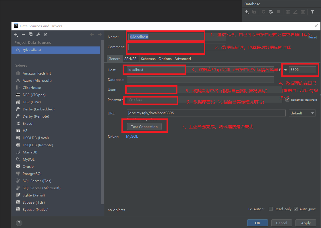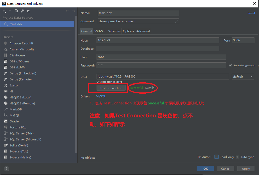 当然第一次进入这页面的时候,Test Connection 这个按钮是灰色的,因为没有响应的驱动文件,这时就需要下载驱动文件,具体如图所示