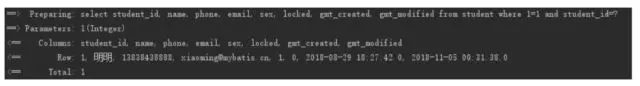 Student student = new Student(); student.setName("小飞机"); student.setStudentId(1);Student studentById = studentMapper.selectByIdOrName(student); System.out.println("有 ID 则根据 ID 获取"); System.out.println(ToStringBuilder.reflectionToString(studentById, ToStringStyle.MULTI_LINE_STYLE));student.setStudentId(null); Student studentByName = studentMapper.selectByIdOrName(student); System.out.println("没有 ID 则根据 name 获取"); System.out.println(ToStringBuilder.reflectionToString(studentByName, ToStringStyle.MULTI_LINE_STYLE));student.setName(null); Student studentNull = studentMapper.selectByIdOrName(student); System.out.println("没有 ID 和 name, 返回 null"); Assert.assertNull(studentNull);sqlSession.commit(); sqlSession.close(); }