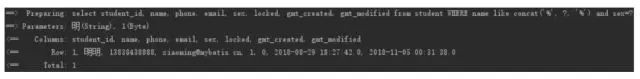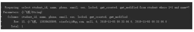 selectfrom studentwhere 1=1and student_id=#{studentId}and name=#{name}and 1=2