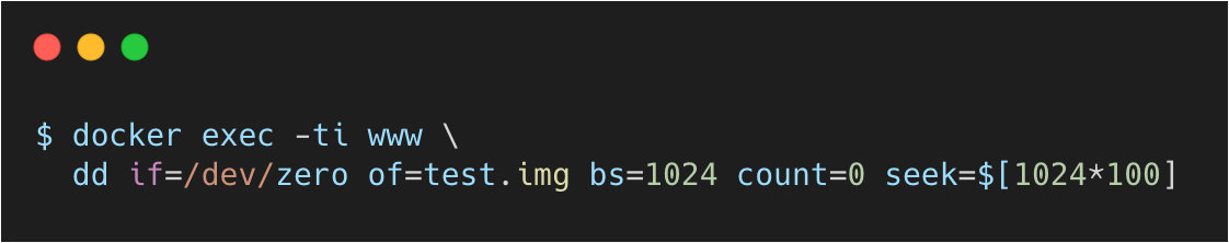 现在,我们在容器内创建一个 100MB 的空文件: