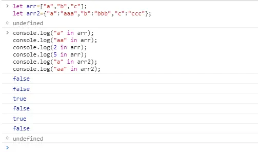 console.log("a" in arr2);