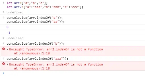console.log(arr2.indexOf("b")); //报错,对象没有indexOf方法