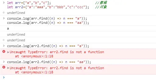 console.log(arr2.find((n) => n === "a")); //报错,对象没有find方法