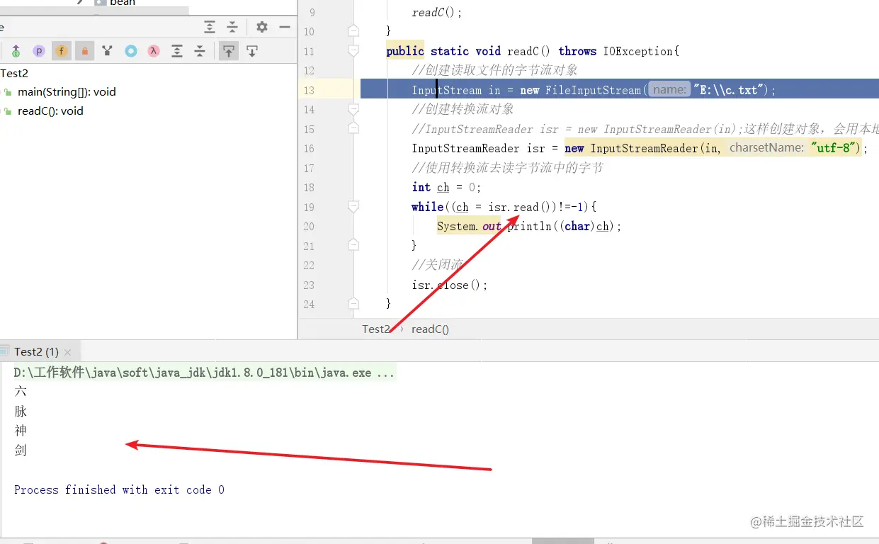 注意:在读取指定的编码的文件时,一定要指定编码格式,否则就会发生解码错误,而发生乱码现象