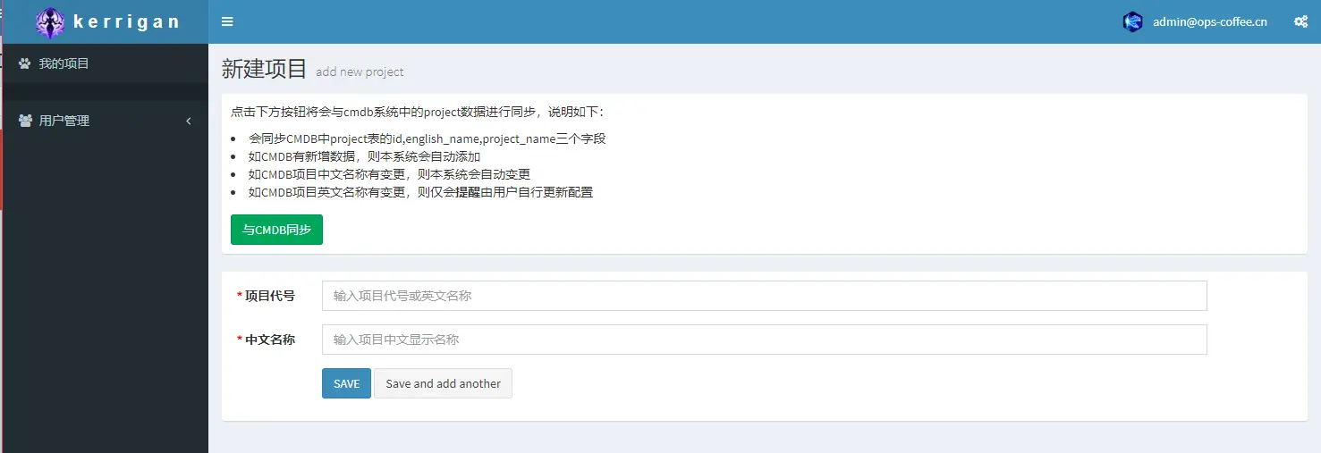 当点击“新建/导入项目”时,可以选择从CMDB同步项目,或者自己填写项目名称新建配置中心中的项目,但由于我们配置中心和CMDB是打通的,配置中心里的所有项目都来源于CMDB,保证项目信息一致性,所以新建项目功能并没有被用到