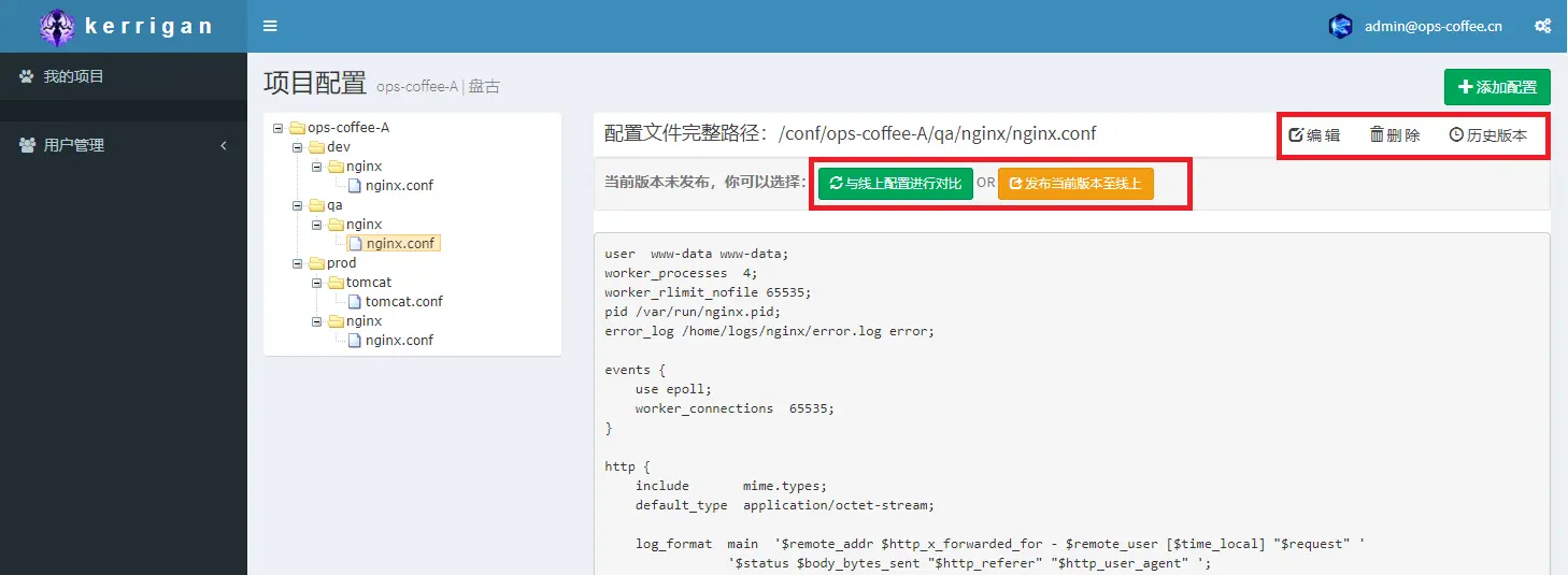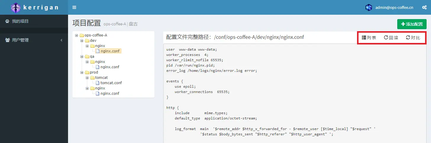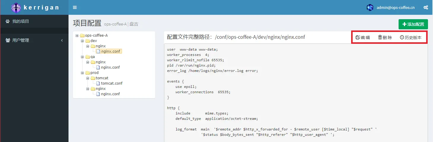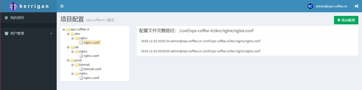 陆续有小伙伴问我能否写篇文章介绍一下配置中心的管理UI(Kerrigan)的实现,咖啡君就通过本篇文章来介绍Kerrigan的设计思路,以及用到的技术和部分核心代码,由于kerrigan有过一次改版,所以界面会与上面文章中的截图有出入