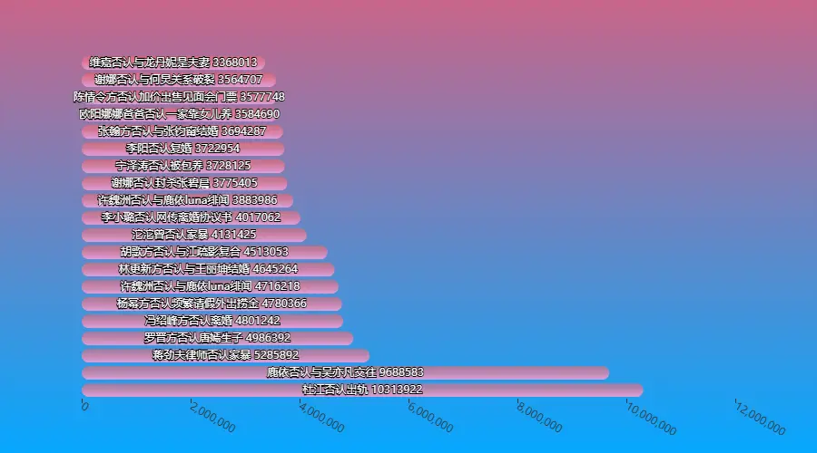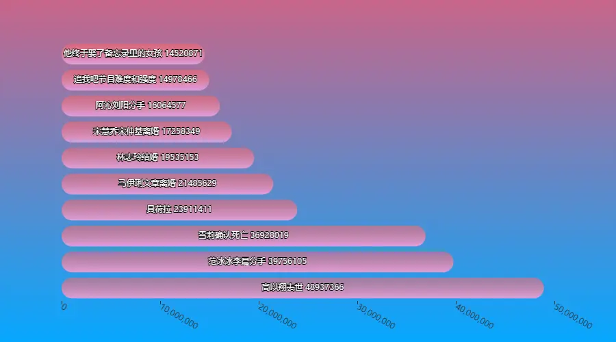 可以看到,总体来说2019上半年比下半年要平静许多,不过6月17号范冰冰和李晨分手的消息还是刷爆了整个娱乐圈。而下半年呢,“十一”的盛大阅兵赚足了大家的眼球,当然11月27号高以翔离世的消息也震惊了整个华人圈,工作与安逸,生活和远方,这是个问题。