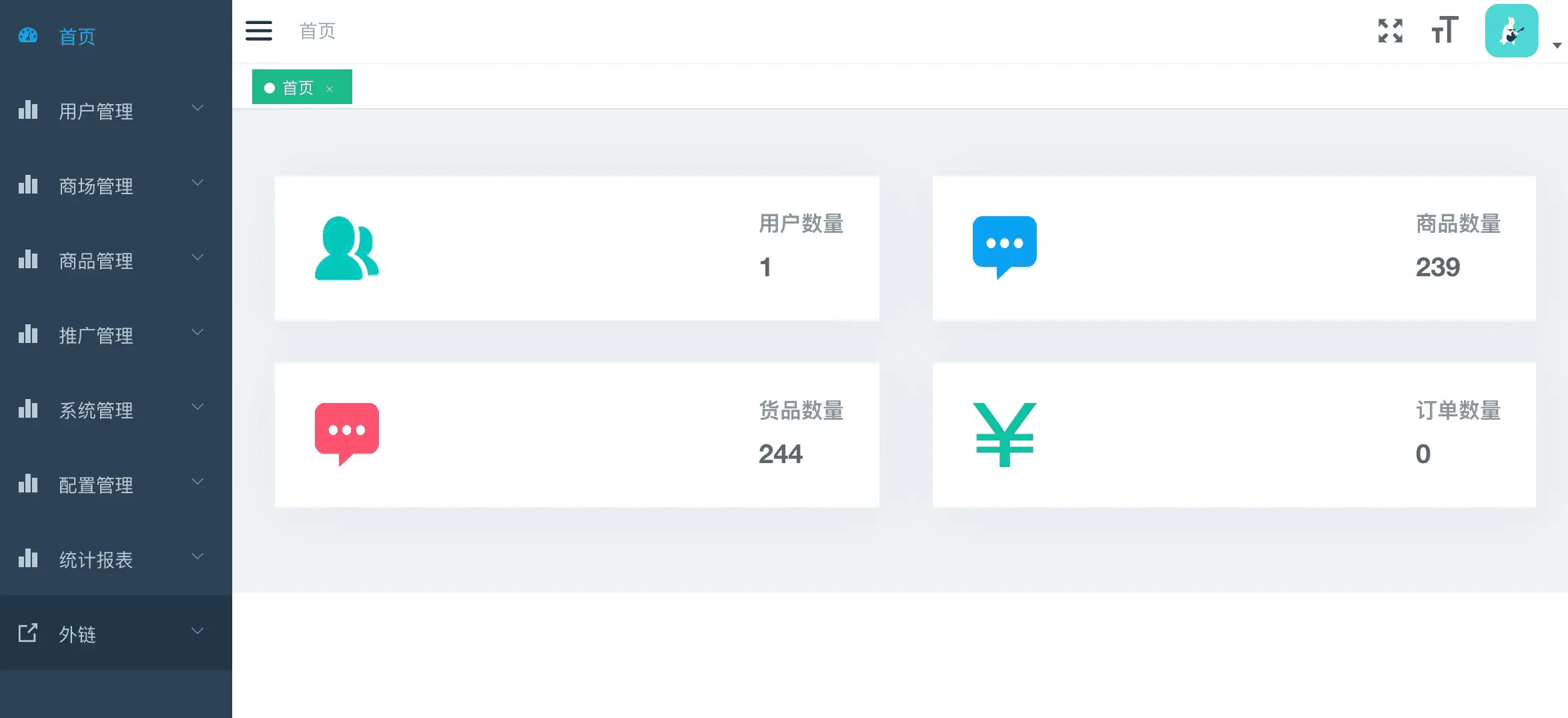 使用默认的账户即可登陆。完成后,会进入到后台管理页面: