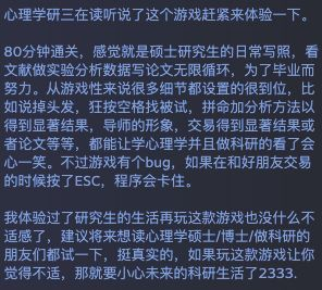 「大学毕业要不要读研?」「硕士毕业要不要读博?」每到毕业季,这些话题就会被顶上热搜。与其空想,不如先来模拟一下读研的生活。 为了满足大家对科研生活的好奇心,Steam 上线了一款模拟游戏,成功激(quan)励(tui)了一批热心于科研的有志青年。