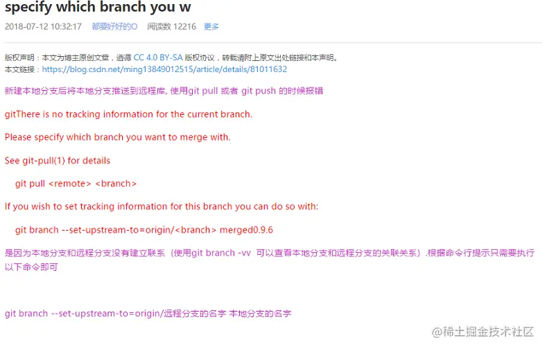 1.6 新建本地分支后将本地分支推送到远程库,使用git pull 或者git push的时候报错,如图有解决办法