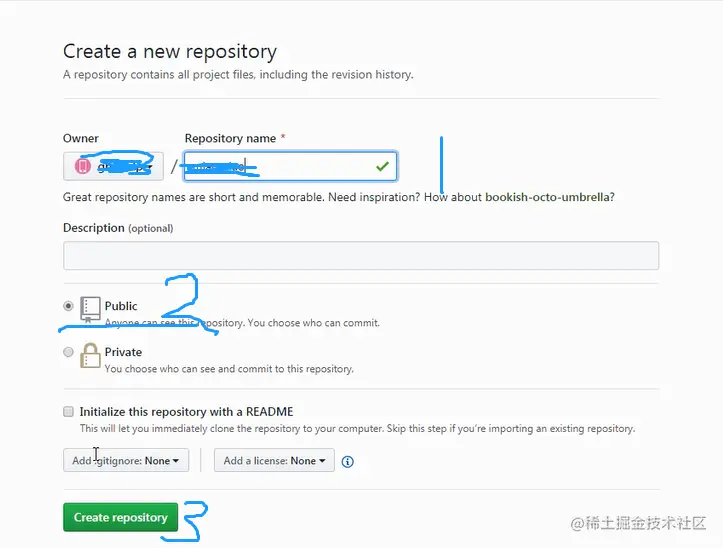 点击New repository,填好所有信息后点击create repository就会进入到类似下面的一个页面,拿到创建的仓库的https地址