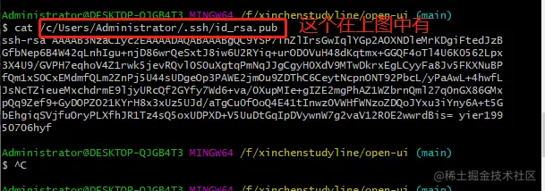 3、然后用:cat + 公钥路径,把出现的key复制下来: