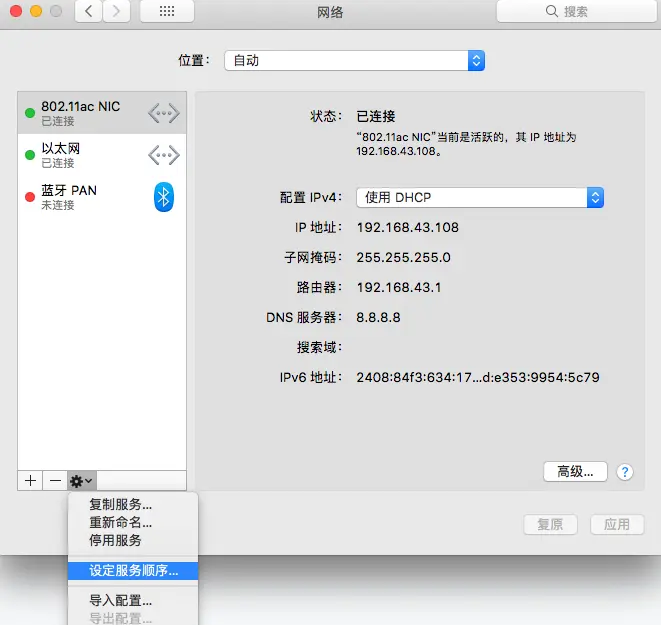 其中172.16.154.xxx是你的有线网卡ip,172.16.154.254是网关