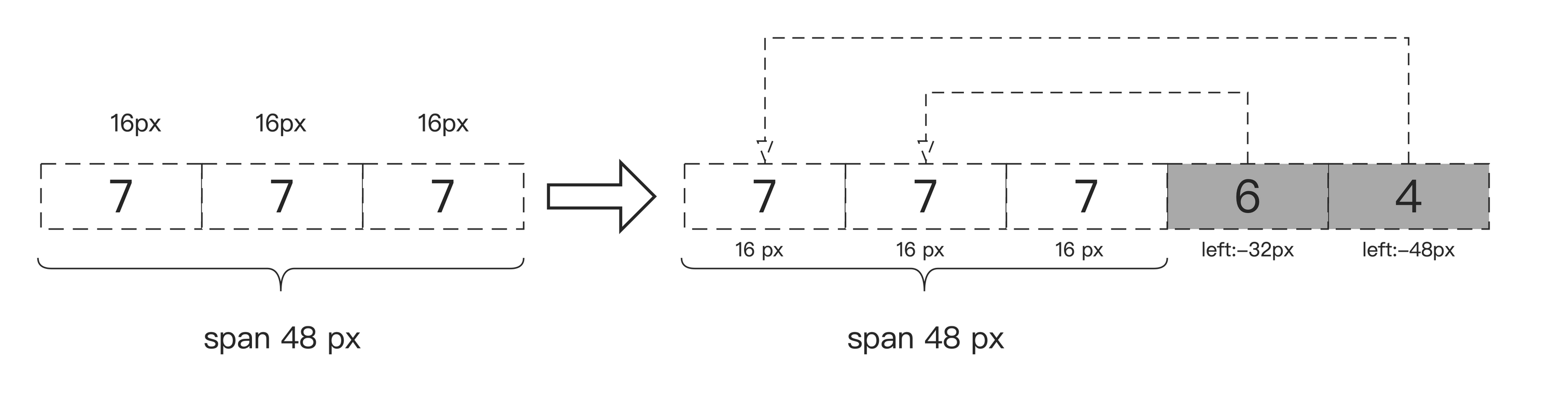 在原理探究和分析方面,你会经历细致的分析过程,并通过示意图加深对知识的理解。例如第 6 章第 2 节 CSS 偏移反爬虫中描述元素位置和样式值关系的示意图: