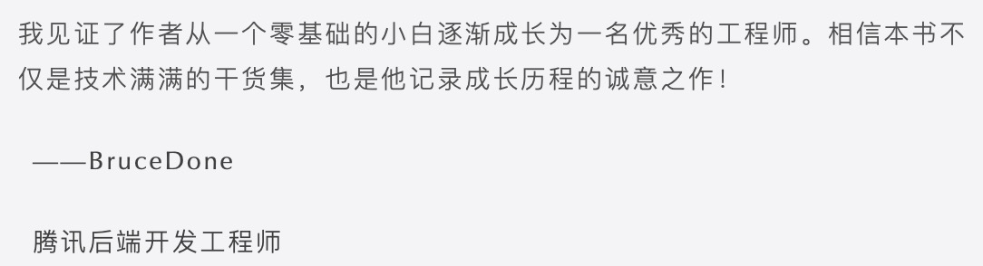 以下是几位大厂工程师为本书编写的推荐语。