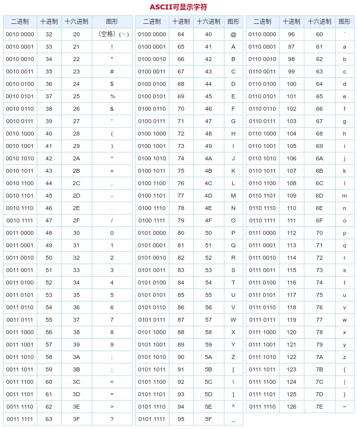 我们可以查询ascii表