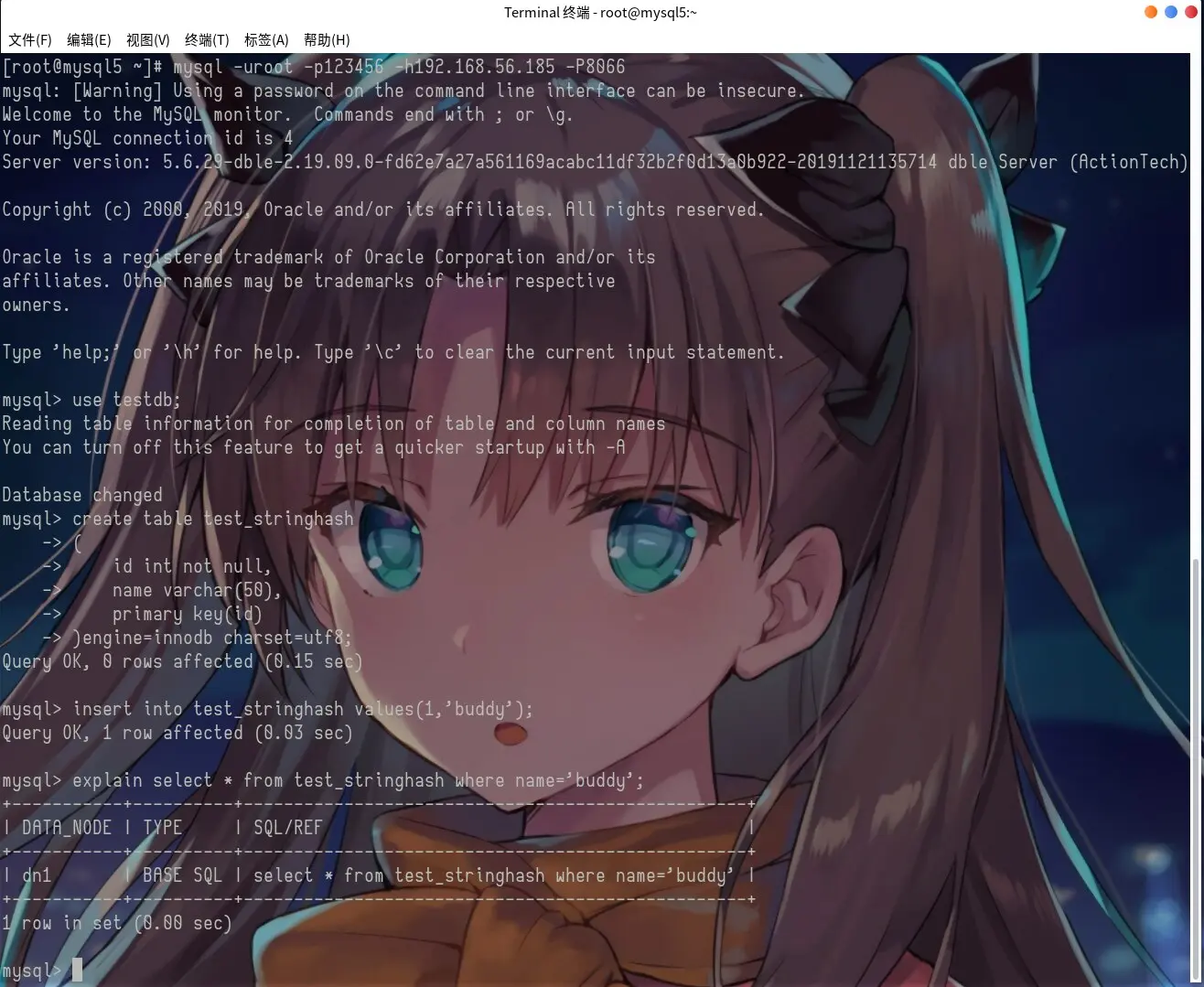 6.让我们建表来测试一下,是不是落在第1个分区。