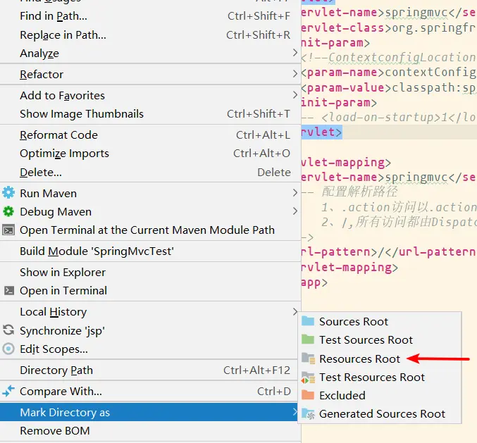 4、在resources目录下新建springmvc-servlet.xml文件,如果没有resources目录的话自己新建一个resources目录,并将其设置为Resources Root: