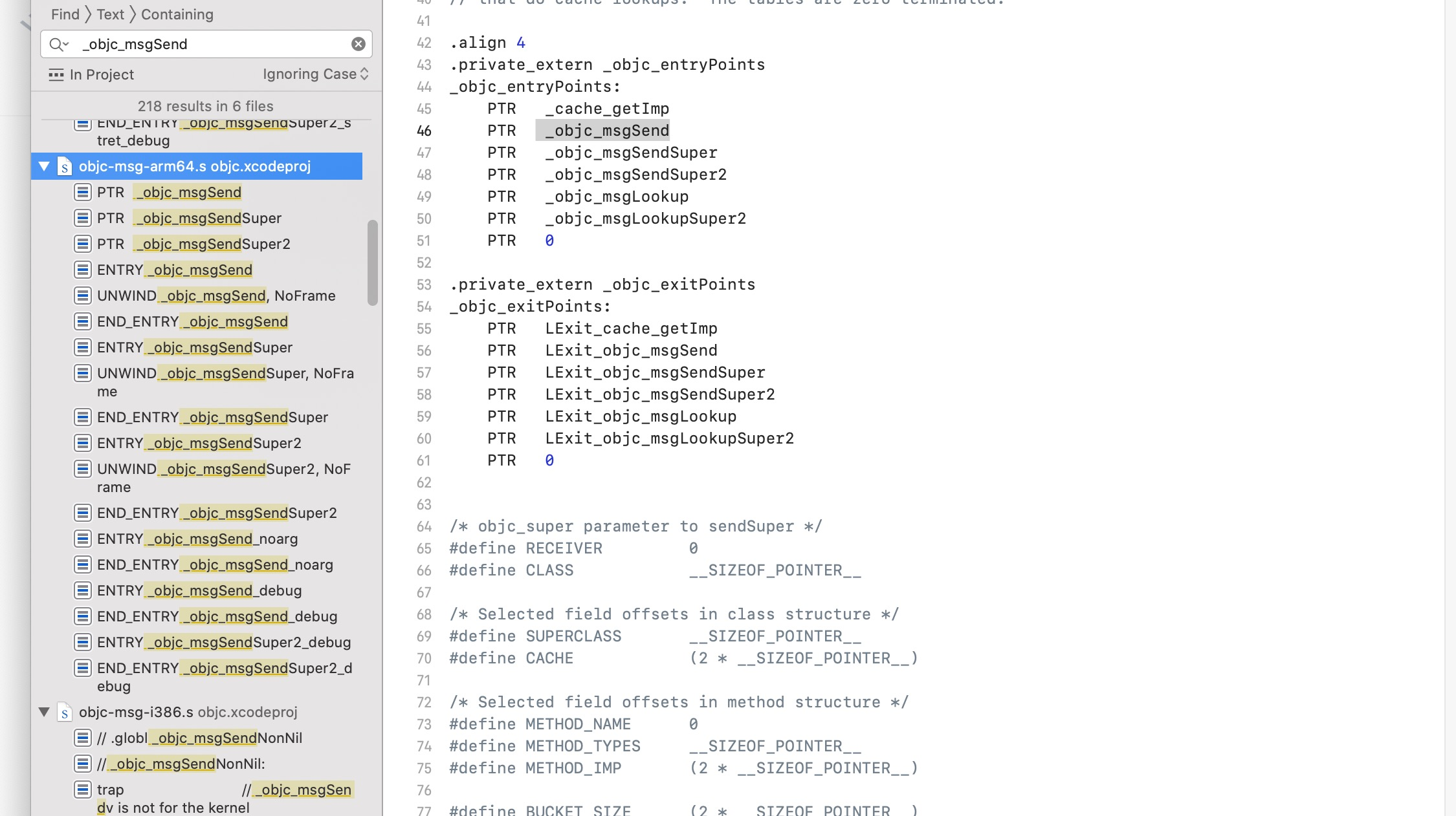 开始在项目工程全局搜索 objc_msgSend 找到实现objc_msgSend的汇编文件
