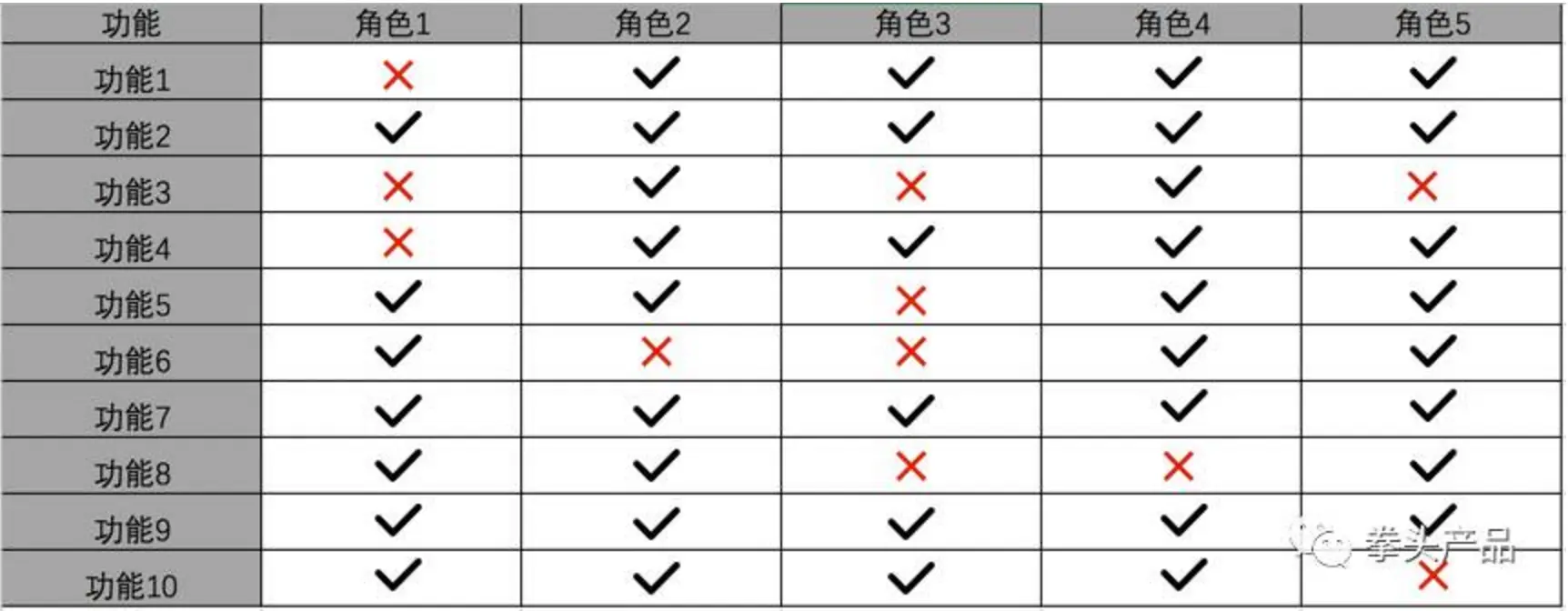 涉及到角色和权限的,需要做一份全面的角色权限表格,方便开发人员参考。››