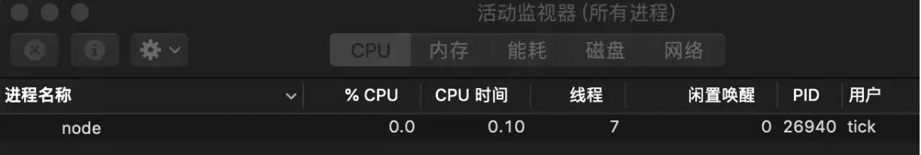 可以看到 Node 进程占用了 7 个线程(注意:不同版本 node 占用的线程数可能不一致)。为什么会有 7 个线程呢?