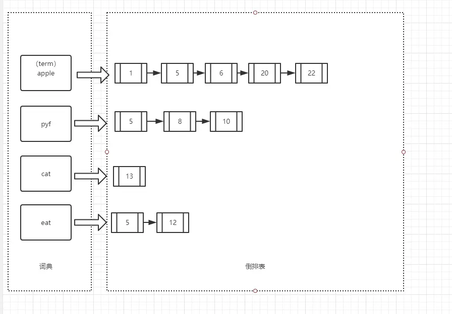 倒排表:一个文档由多个词组成,倒排表记录某个词在哪些文档中出现过。