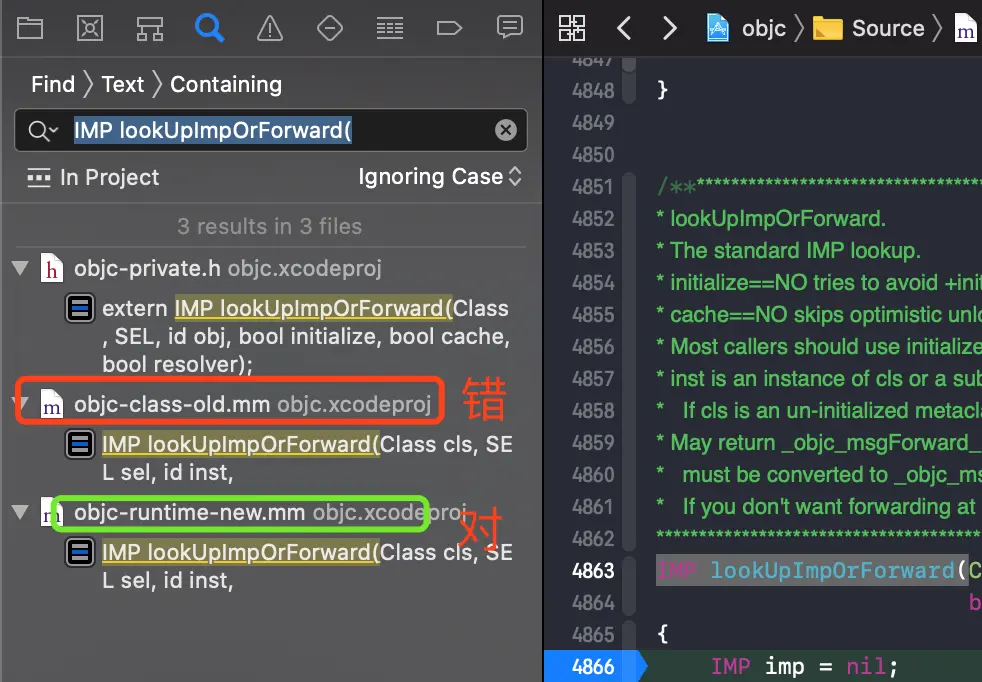 注意 : runtime 有两个版本 , 找源码的时候不要找到 objc-class-old.mm 中去了 .