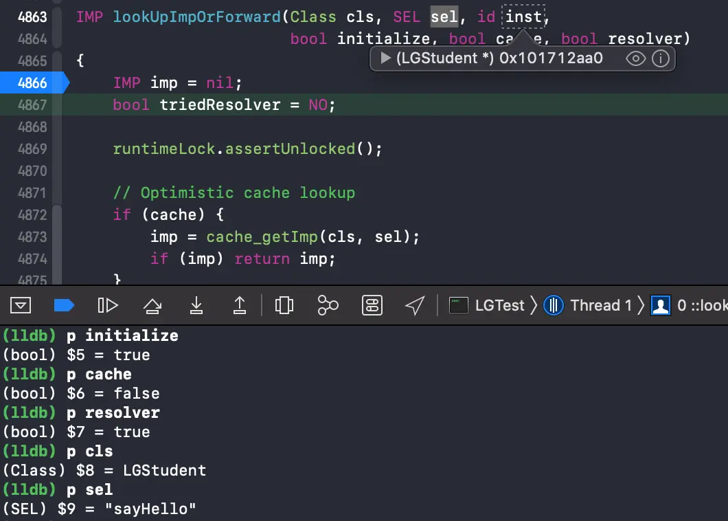 return lookUpImpOrForward(cls, sel, obj,