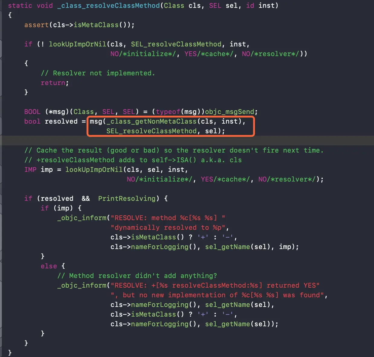 _class_resolveMethod(cls, sel, inst);