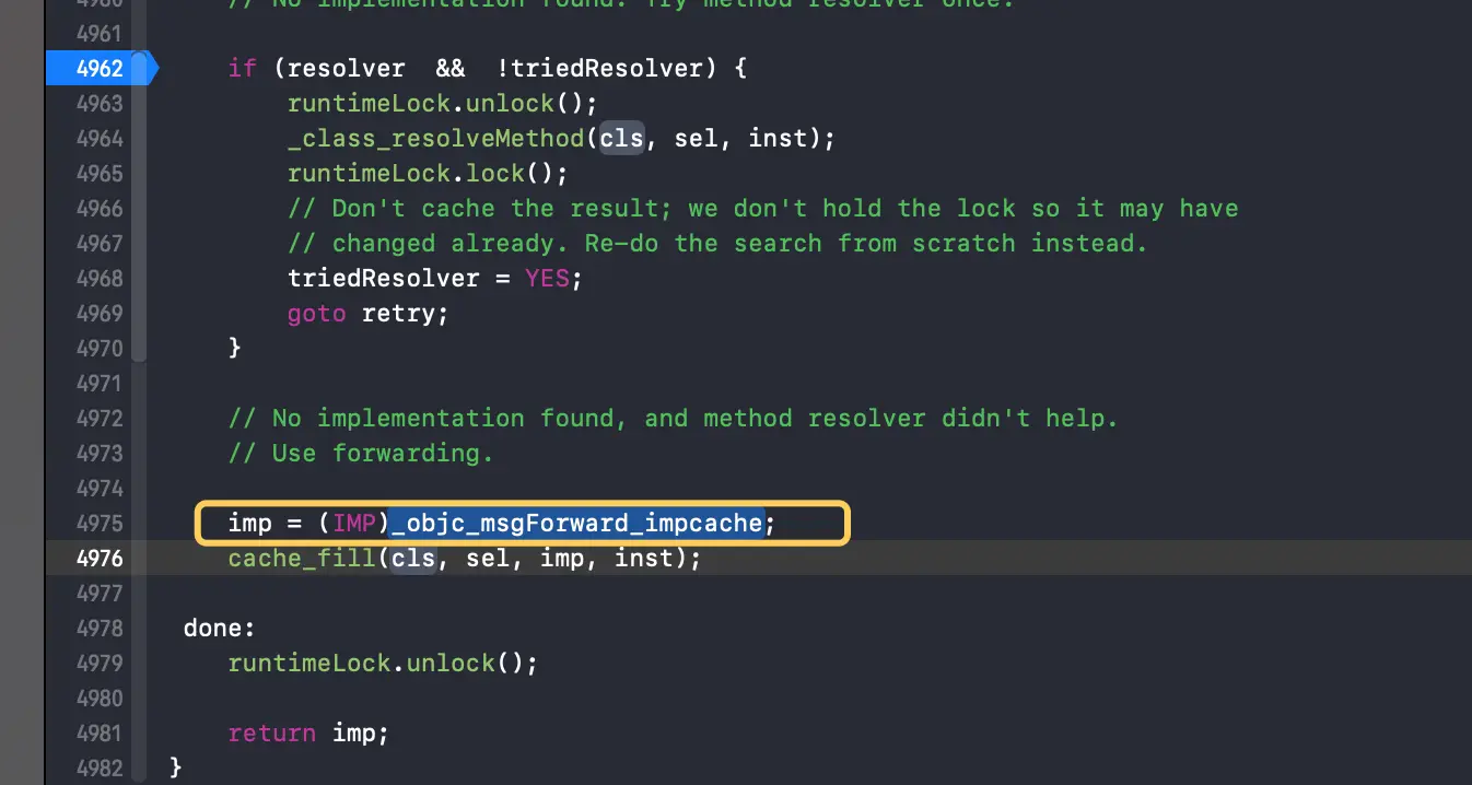 if (imp != (IMP)_objc_msgForward_impcache) {