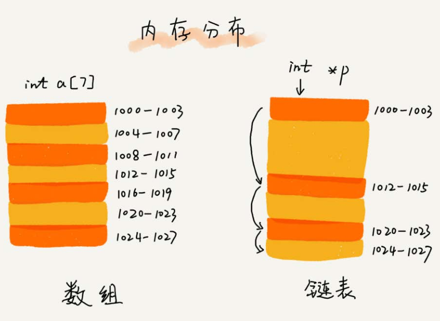 - 从内存结构来看,链表的内存结构是不连续的内存空间,是将一组零散的内存块串联起来,从而进行数据存储的数据结构。
